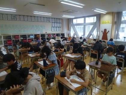朝、登校してから教室では、社会科の教科書を出して、どんな問題が出るかを友達同士で予想し合っている姿が見られました。