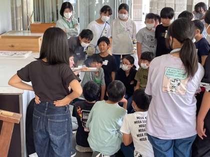 火起こし体験の時間です。 火の起こし方の説明を聞いて、自分たちで挑戦します。 うまくできるかな?
