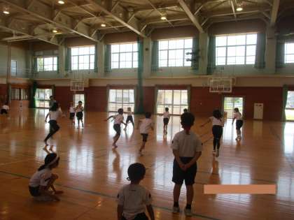 体育科「かけっこ・リレー」の学習で、バトンパスの練習を行いました。