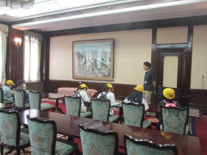 県庁の見学では、県の表彰式などで使用される特別室に入らせてもらい、説明を聞きました。県庁がいつできたかや、国の登録有形文化財に指定されていることなどを教えていただきました。
