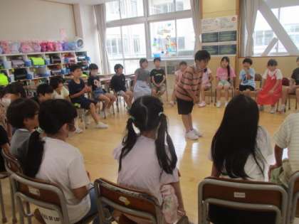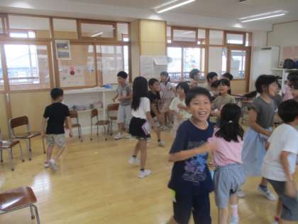 学級活動で、フルーツバスケットと貨物列車をしました。みんなが楽しめる企画を考えてきた成果を発揮してくれました。