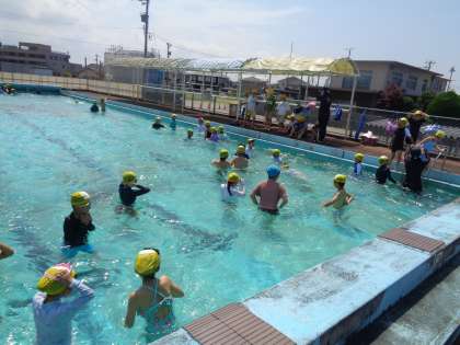 天気に左右されながらも、3年生はプールでの学習をがんばっています。今日も自分で学習のめあてを決め、コースごとに分かれて泳ぐ練習をしました。