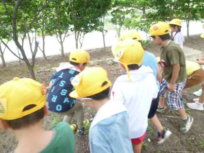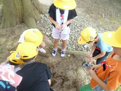 1年生みんなで公園探検に行きました。せみの抜け殻や、ダンゴムシ、球根等いろいろなものを見つけることができました。