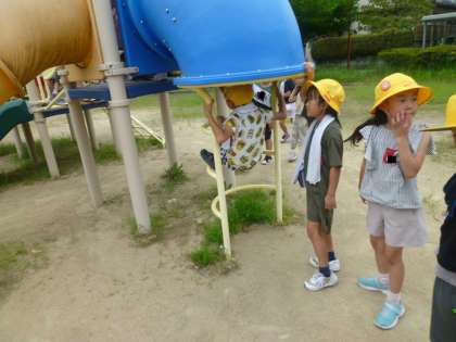 みんなで楽しく、遊具で遊びました。それぞれのクラスで話し合ったルールをしっかり守ることができましたね。
