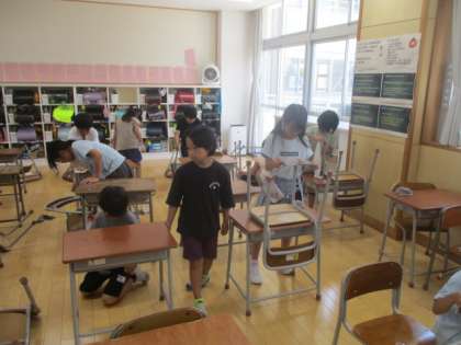 1学期の間使っていた机やいす、ロッカーや下足箱など、様々な場所を大掃除しました。一生懸命取り組み、きれいになりました。充実した夏休みを過ごしてください。