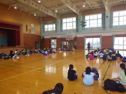 明日から行われる宿泊学習に向けて、荷物を確認しました。明日から力を合わせて頑張りましょう。