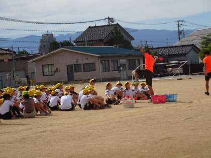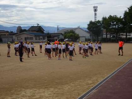 朝の時間を利用して陸上教室(2回目)を行いました。