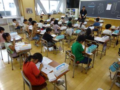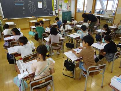 絵の具を少しだけ出して、かんらんしゃに色をつけていきます。