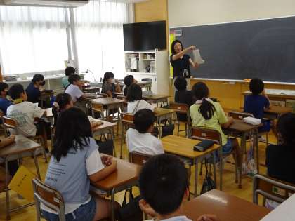 5年生の教室では、工夫して取り組んでいる自主学習ノートの紹介をしていました。