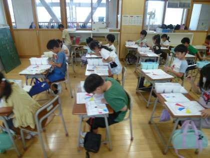 1年生 水彩 カラフルかんらんしゃ 公開日 2023/08/31 更新日 2023/08/31 1年生 はじめて水彩道具を使って、色を塗りました。はみ出さずに塗ったり、絵の具と水を上手に混ぜたりしていました。わくわく、楽しそうな様子でした。