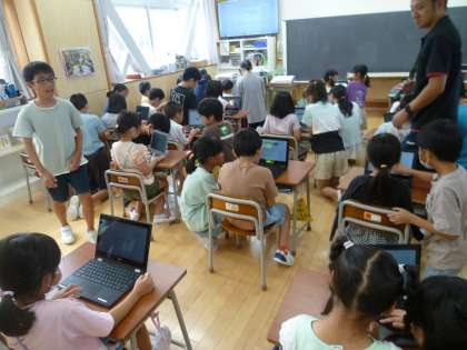 6年生に手伝ってもらいながら、アンケートに答えました。自分でひらくことができ、使い方にも慣れてきています。