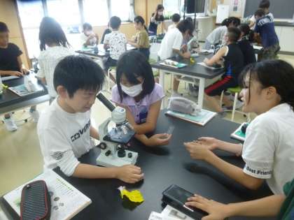 理科の学習で、ヘチマとアサガオの花粉の観察をしました。