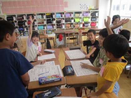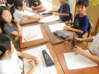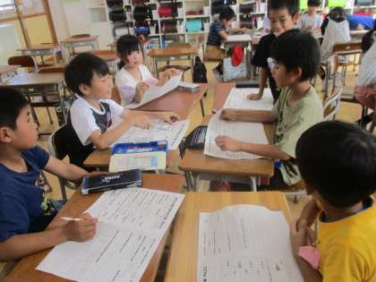 学習成果発表に向けて、発表原稿をつくっています。育てた野菜のグループに分かれて、原稿を考えました。みんなのがんばりや思いが伝わる文章を、協力して考えていました。