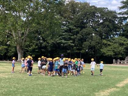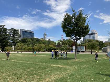 広場でおにごっこや、はないちもんめ等、楽しんでいます。
