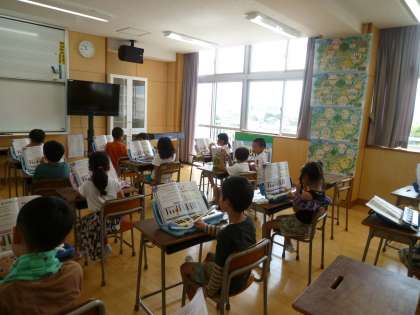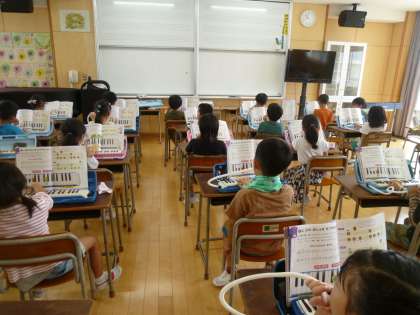 鍵盤ハーモニカでどんぐりさんのおうちをひきました。強さや長さに気を付けてひくことができました。