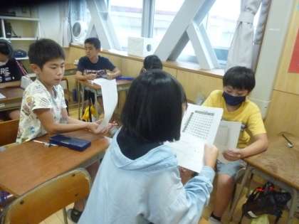 九九表を見ながら、友達のヒントをもとに数字を当てるゲームを行いました。