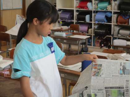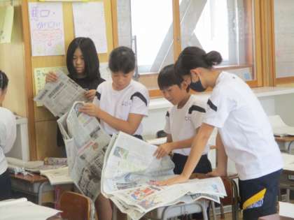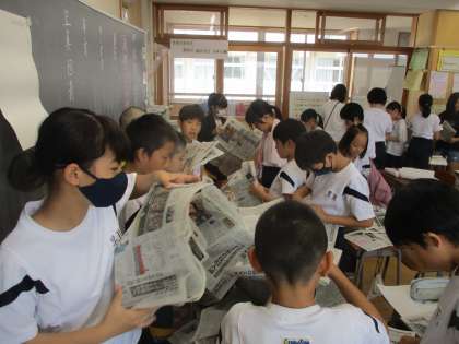 国語で新聞について学習しました。普段から読んでいたり、家族との会話から気になった記事に目を通したりしていると話す子供が多く、驚きました。国語では、新聞の作りや工夫を学習します。どの記事にしようかと、真剣に記事を探していました。