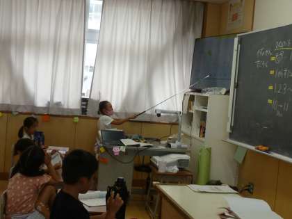 数の線と、すごろくの並び方の違いを発表しました。みんなに自分の考えを知ってもらおうと、前に出て発表する子供が増えてきました。