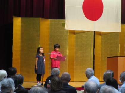 3年生の代表児童が手紙を読みました。ゆっくりと大きな声で読み、会場の皆様から大きな拍手をいただきました。