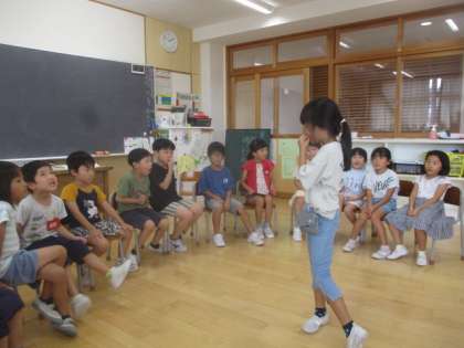 5時間目の終わりのちょっとした時間で学級会をしました。学級会では何でもバスケットを行い、子供たちは「算数がすきなひと」「給食が好きな人」などと言い、楽しんでいました。