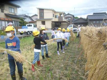 自分で何をしたらよいか考えながら、稲を運んだり落ち穂を拾ったりしていました。