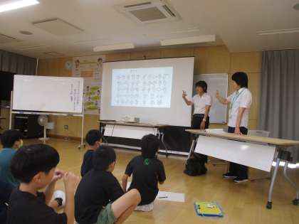 富山聴覚総合支援学校の先生方に来ていただき、聴覚総合支援学校での生活やろう者の気持ち、手話や指文字について教えていただきました。