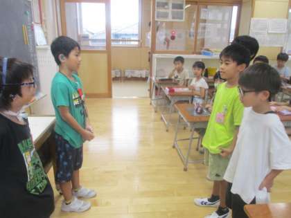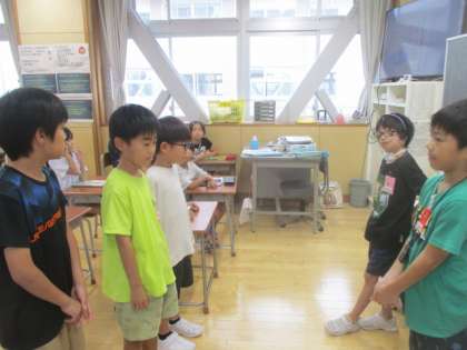聴覚支援学校の2年生と交流しました。クイズを出して奥田北小学校のことを知ってもらい、国語科の学習では、ノートを見せ合ったり、教科書を読んだりする姿が見られました。
