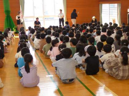 地震の避難訓練をしました。どこの階段が壊れてしまったのかなど、放送をよく聞いて避難することができました。