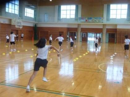 バトンをつなぐ友達と、ライン鬼ごっこをしました。