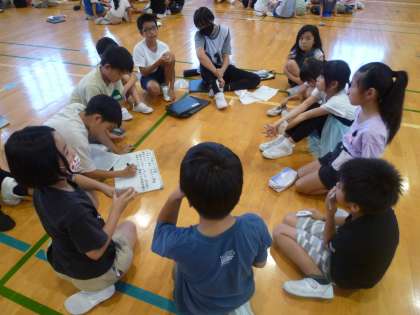 今日の学校づくり会議では、6年生からの提案説明を受け、ひまわり班ごとに「遊具をつくりたい」「生き物を飼いたい」「学校のイベントを増やしたい」といったテーマについて話し合いました。