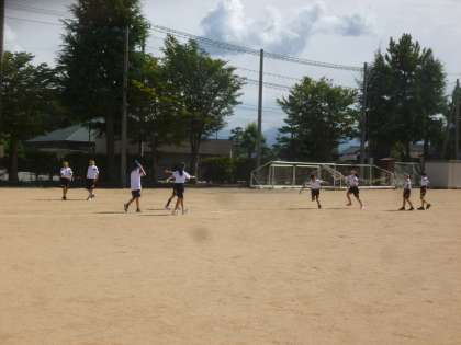 どのタイミングでバトンパスをすればスムーズに繋がるのか、みんなで何度も距離を変えて取り組んでいました。