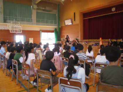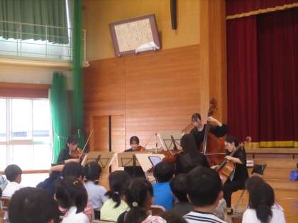 桐朋オーケストラアカデミーの演奏会がありました。初めて目の前で見た楽器がたくさんあり、弦楽器のきれいな音色に聞き入っていました。楽器の特徴や曲についても詳しく教えていただき、芸術の秋を楽しむことができました。