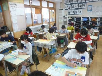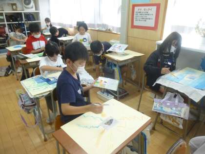 自分の選んだ写真から感じたにおいや音、光などを模様や線で表現しました。