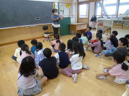 朝の時間に絵本の読み聞かせをしていただきました。楽しいお話でしたね。