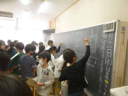 肌寒くなってきたので、子供たちも秋らしさを感じているようです。たくさんの言葉が集まりました。この後、集めてきた言葉を使って清少納言のように「秋は○○」づくりをしていきます。