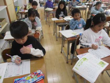 国語「お手紙」の学習では、登場人物の会話や挿絵から、様子や気持ちを読み取っています。「がまくんの悲しみの中に、心配やいらいらした気持ちも入っていると思うな」「友達が悲しいと、自分も悲しくなることがある」「親友だったら、もっと気持ちが分かるな」など、仲間と話し合う中で、より想像を広げて気持ちを考えることができました。