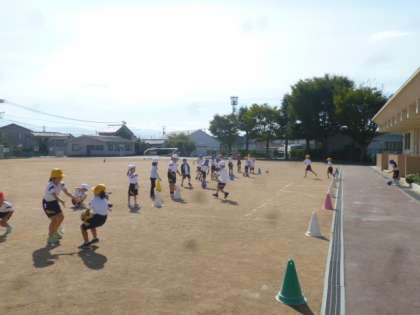 体育の時間にボール蹴り遊びを行いました。ボールをコーンとコーンの間をめがけて蹴りました。蹴ることだけでなく、ボールを拾ったり友達に蹴り方を教えたりする姿もありました。グラウンドで体を思い切り動かす子供たちでした。