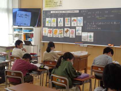 算数では、スーパーに売っている品物を選んで5つ、2000円以内という条件のもと、見積もりを出しました。