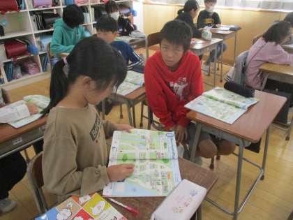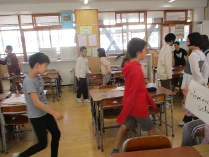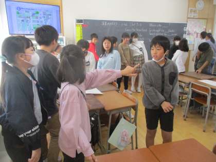 教科書の地図で案内をしたり、教室を町に例えて案内をしたりしました。