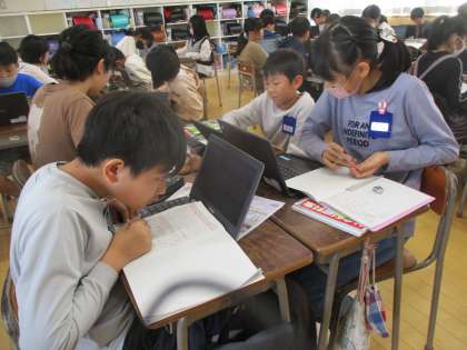 今日は、工業製品を自分で考えた種類で分け、その後、班で話し合いました。
