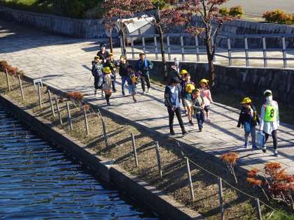 環水公園まで歩いて出かけ、ウォークラリーで班の交流を深めました。