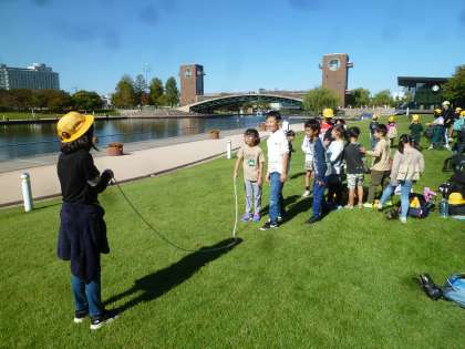 各チェックポイントでは、富岩運河に関するクイズに答えたり、長縄とびにチャレンジしたりしました。