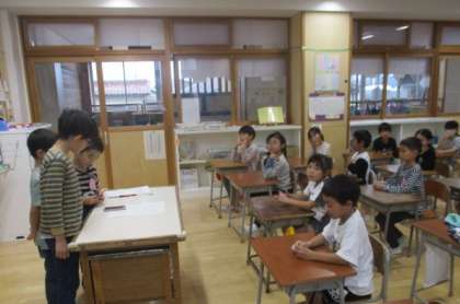 町探検に向けて、地域の方にお電話をしました。自分たちで電話をかけて大人の方に依頼をしたり、約束をしたりする機会が少ない子供たち。緊張しながらも、お願いしたいことや日程を上手く伝えることができました。周りの子供たちもドキドキしながら電話の様子を聞いていましたが、地域の方が引き受けてくださり、とても喜んでいました。町探検がますます楽しみになったようです。