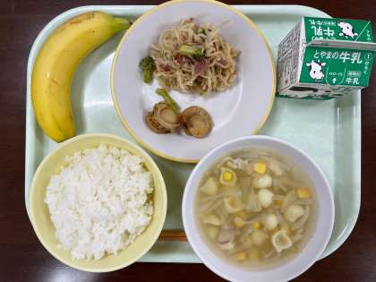10月23日(月)の給食 公開日 2023/10/23 更新日 2023/10/23 きょうの給食 【献 立】 ごはん、牛乳 ほたてのバター醤油焼き 切り干し大根のペペロンチーノ マカロニスープ バナナ