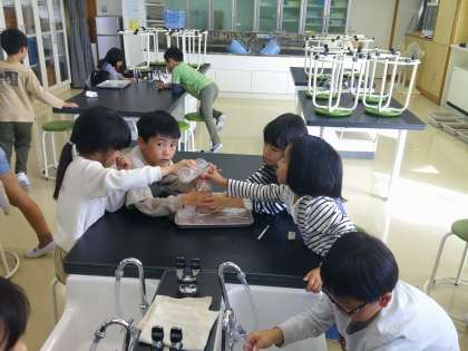 実験は一度では、本当にその結果が正しいのかわからないから、何度も同じ結果が出ることが大事だと伝えると、何度も何度もチャレンジして実験する子供たちの姿が見られました。