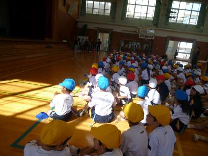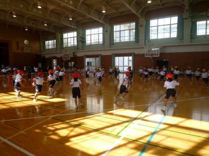 運動委員会が企画してくれた、しっぽとり大会をしました。相手のしっぽをとったり、自分のしっぽを守ったりしながら、逃げたりしました。