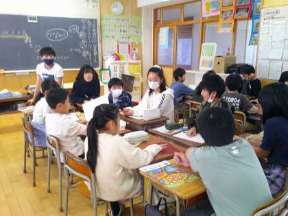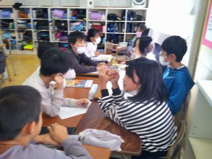 「過去」「未来」「友達」「握手」「空や海」など・・・様々なキーワードが出てきました。この後組み合わせを考えます。どのような作品に仕上がっていくのか楽しみです。