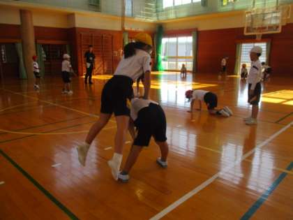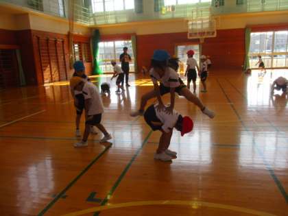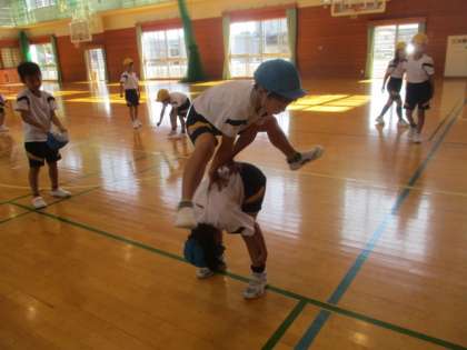 体育では、跳び箱の運動を進めていきます。今日はウォーミングアップとして、友達と馬跳びをしてみました。跳べる高さを調整してもらいながら、友達と楽しそうに運動していました。跳び箱を使って練習するのが楽しみですね。