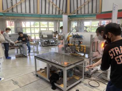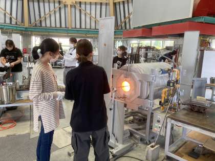 ガラス工房の方々にお世話になりながら、みんな真剣に取り組んでいます。