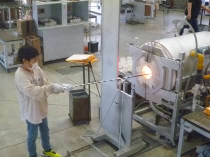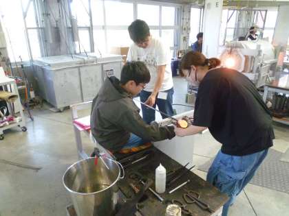 どんな模様や色にするかデザインを決めてから制作にとりかかりました。ガラス工房の方の指導を受けながら子供たちは慎重に作業していました。